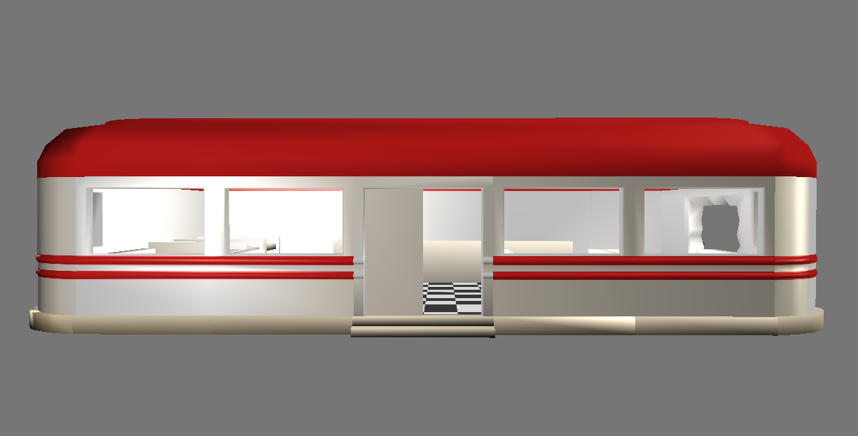 I've been very busy with my Uni Games Design honours project lately. My project is a "Diner in the Desert" and I've now finished 3D modelling the modular architectural pieces for the most important part - the diner itself!